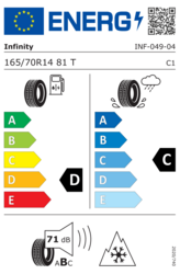 Para enfrentarse a las diversas condiciones invernales al volante de un turismo, INF 049 165/70 R14 81T ofrece una buena respuesta. Su banda de rodadura, con surcos profundos, favorece la evacuación de la nieve y el agua. Su gruesa goma es suave y ofrece una adherencia efectiva incluso a temperaturas muy bajas.